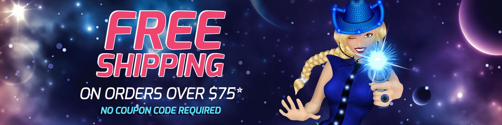 *Receive free Ground shipping on your order of $75 or more (merchandise/subtotal) on shipments being delivered within the contiguous United States (excludes Alaska, Hawaii, and all international shipments). No coupon required (discount will be applied automatically at checkout). Offer not valid with any other discounts, special pricing, orders that have already been placed, orders that are currently in production, or custom/imprinted products orders. Free shipping offer not valid on exchanges.