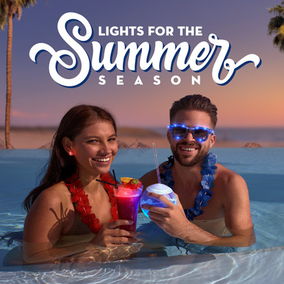 Summer Fun is in full swing now that brilliant glowing LEDs are on the scene! Entertain in your backyard or at the beach with blinking Bubble Guns, swirling LED Fans, lit up Cocktail Glasses & tropical Light Jewelry. Choose from an assortment of vacation themed blinkies too - so fun, so affordable. So make it the best summer ever with FBL lighting up your hot summer nights!